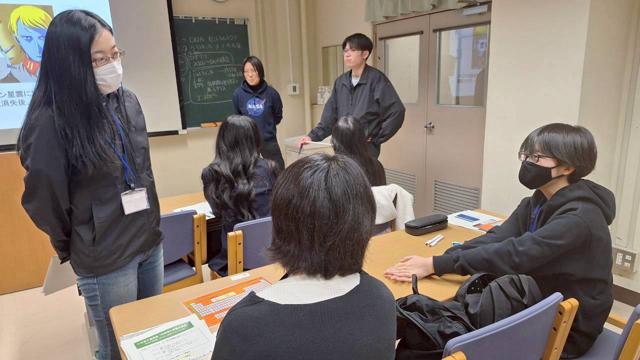 10/20(日)に第4回目の小中高大連携型「科学者の卵養成講座」(岩手大学実施;がんだい日曜サイエンスラボ)」を実施しました。中学生10名、高校生8名の参加がありました。今回は物理(素粒子)と生物(昆虫)がテーマでした。1つめの講義は成田晋也先生(岩手大学教授)に「宇宙誕生のなぞに迫る」といった内容で講義を行っていただきました。物質の構成や素粒子、原子、素粒子の観測、宇宙誕生の話などをわかりやすく説明いただきました。参加者にも興味が高いテーマで意見や質問も多く出ました。2つめの講義は高梨琢磨様(森林研究・整備機構森林総合研究所)に「昆虫が使う振動を農業に応用する」といった内容で、昆虫が振動をどのように感知してどのように利用しているか、またその性質を用いた農業における防虫技術などについてお話しいただきました。講義のあとは、実際に振動を使った防虫装置の実演も行われ、生徒さんたちにも振動を感じてもらいました。農業と昆虫の関係は、SDGs的にも大切なテーマで、活発な意見交換や質問も行われ、新たな気付きにもつながりました。メンターの学生さんの簡単な研究紹介(ミニ講義)では、医療や生命系の研究の紹介がなされ、参加者は興味深げに聞いていました。