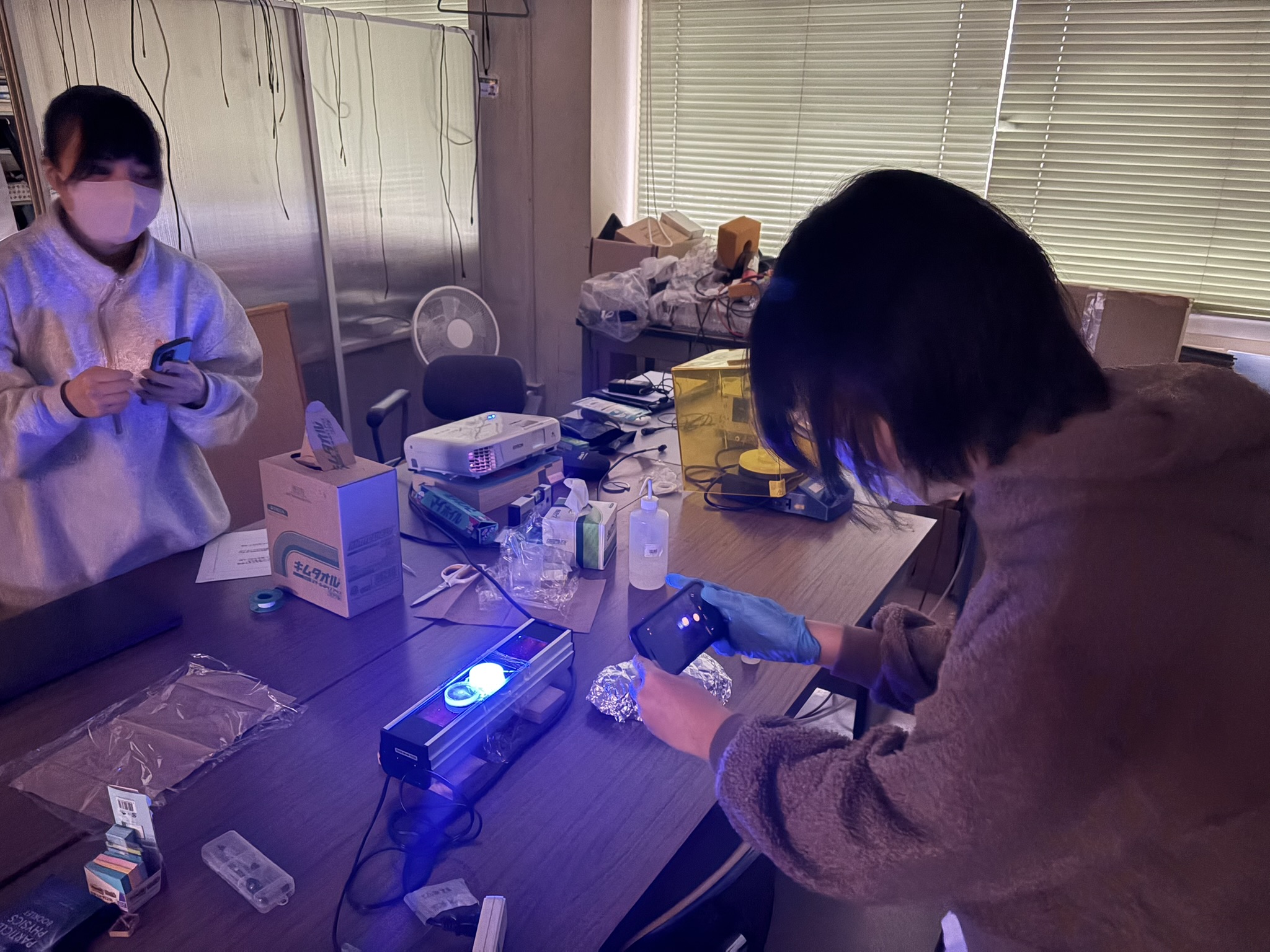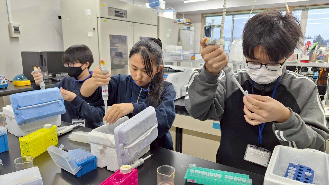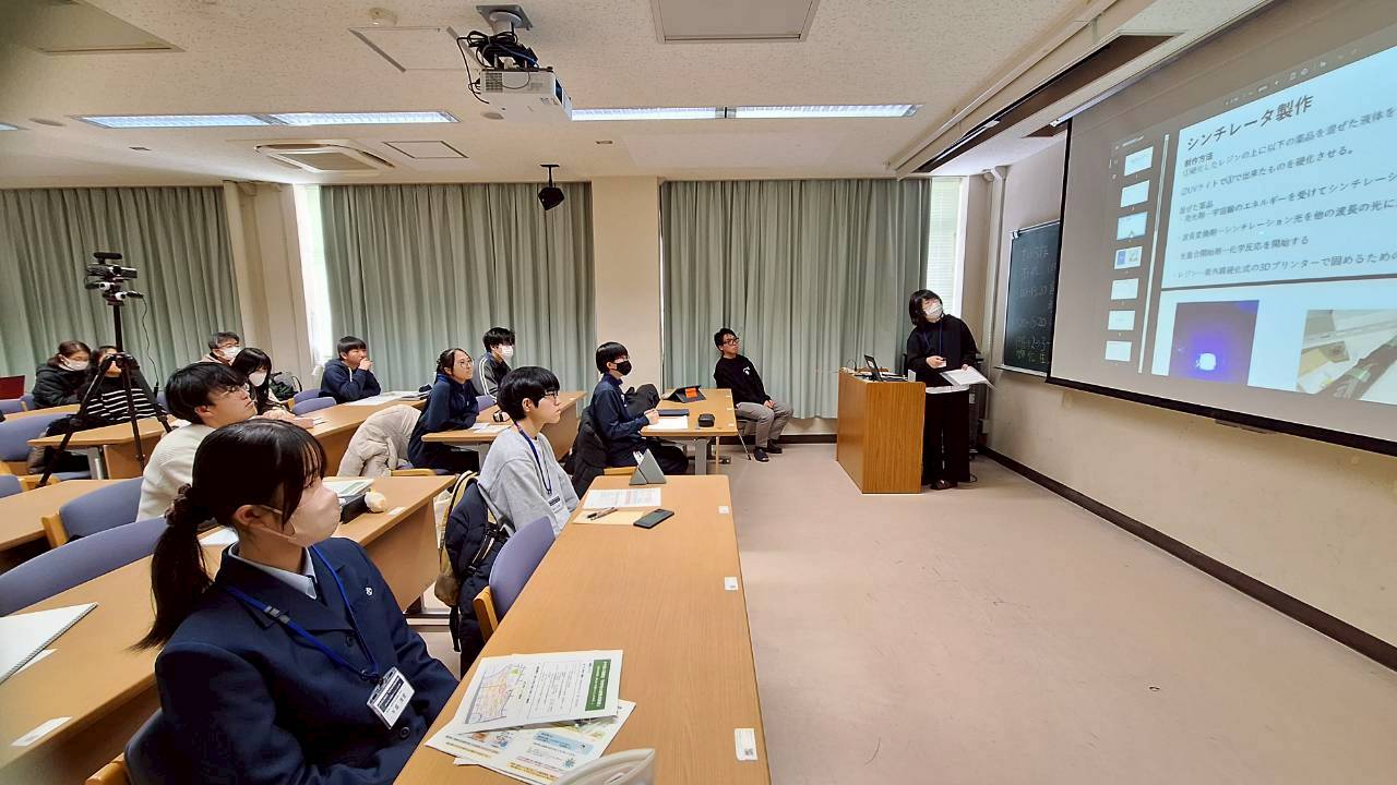 12/7(日)に第6回目の小中高大連携型「科学者の卵養成講座」(岩手大学実施;がんだい日曜サイエンスラボ)」を実施しました。中学生5名、高校生5名の全員が参加しました。今回は、これまでの講義形式とことなり、6つの大学の研究室に分かれて、実験や実習を中心に実施しました。 物理分野は「宇宙から降り注ぐ粒子をつかまえてみよう~シンチレータの製作と宇宙線ミューオン測定~」のテーマで、メンターの渡邊夏七子さん、細川律也先生(岩手大学 理工学部 数理・物理コース)にアレンジいただき、1名の生徒さんが参加しました。化学分野は「プラスチックの生合成と化学合成の違いについて、見学・体験を通して考えてみよう」のテーマで、山田美和先生(岩手大学 農学部 生命科学科 分子生物機能学コース)にアレンジいただき、2名の生徒さんが参加しました。生物・医療分野は「培養細胞から抽出した"見えない"タンパク質の濃度を測定しよう」のテーマで、メンターの忠海優作さん、尾崎拓先生(岩手大学 農学部 生命科学科 分子生命医科学コース)にアレンジいただき、3名の生徒さんが参加しました。地学分野は、「霧の不思議と高低気圧の流体実験」のテーマで、名越利幸先生(岩手大学 名誉教授)にアレンジいただき、1名の生徒さんが参加しました。数学・情報分野は、「画像を認識する人工知能を実際に作り,性能を確かめよう」のテーマで、木村彰男先生(岩手大学 理工学部 知能情報コース)にアレンジいただき、1名の生徒さんが参加しました。科学・工学一般では、「静電気とその利用~イオンエンジン:知る・見る・使う~」のテーマで高木浩一先生(岩手大学 理工学部 電気電子・情報通信コース)にアレンジしていただき、2名の生徒さんが参加しました。