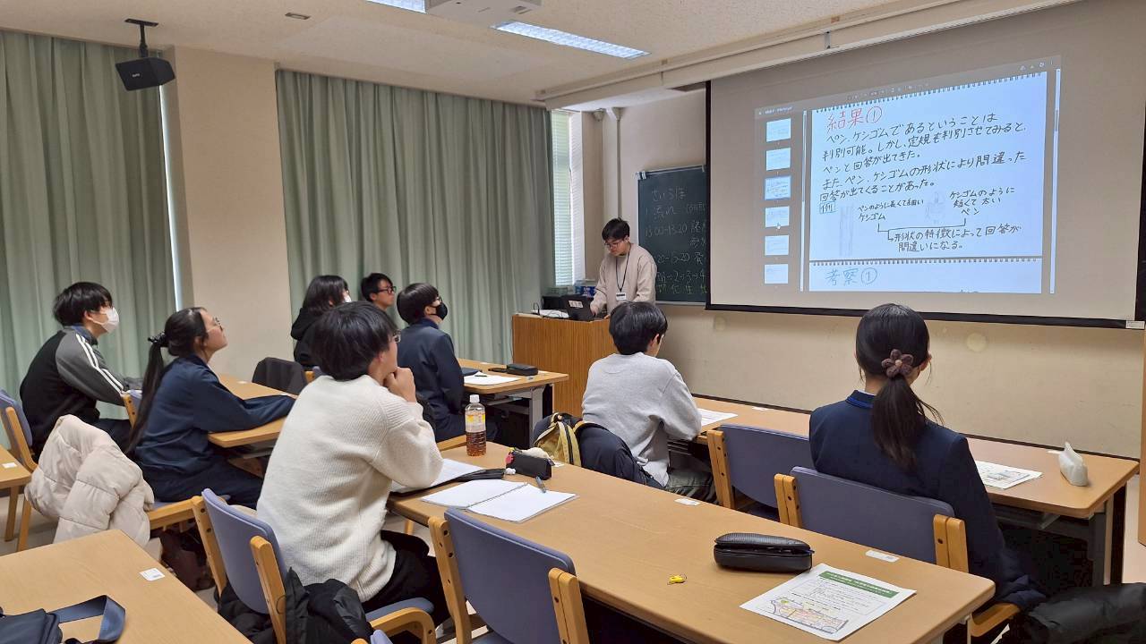 11/10(日)に第5回目の小中高大連携型「科学者の卵養成講座」(岩手大学実施;がんだい日曜サイエンスラボ)」を実施しました。中学生11名、高校生5名の参加がありました。今回は数学と化学がテーマでした。1つめの講義は宮島信也先生(岩手大学・理工学部・教授)に「コンピュータも計算を間違える」といった内容で講義を行っていただきました。連立方程式の解の求め方を例にとって、コンピュータで解を求める流れや、メモリーと不適当な解を出してくる関係性、その回避法などをわかりやすく説明いただきました。参加者も数式を解きながら参加して、意見や質問も多く出ました。2つめの講義は山田美和先生(岩手大学・農学部・教授)に「微生物がつくる環境に優しいバイオプラスチック」といった内容で、生分解性プラスチック、また生物由来のプラスチック、その社会実装の長所と難点などについてお話しいただきました。実際に開発されたバイオプラスチックやすでに実用化されているものなどもお持ちいただき、生徒さんたちにも触ってもらったりしました。マイクロプラスチックによる海洋汚染やバイオプラスチックは、SDGs的にも大切なテーマで、活発な意見交換や質問も行われ、新たな気付きにもつながりました。メンターの学生さんの簡単な研究紹介(ミニ講義)では、ILCや素粒子観測機器の研究の紹介がなされ、参加者は興味深げに聞いていました。
