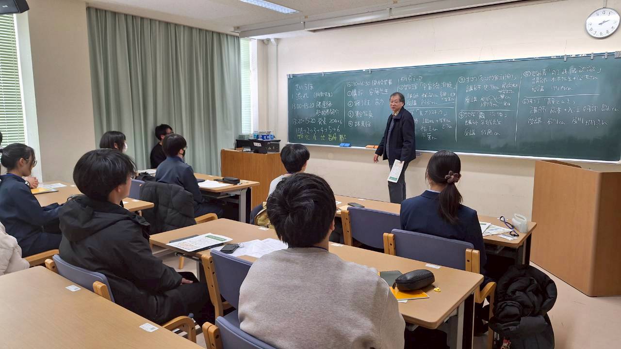 1/25(日)に第7回目の小中高大連携型「科学者の卵養成講座」(岩手大学実施;がんだい日曜サイエンスラボ)」を実施しました。今回も、中学生5名、高校生5名の全員が参加しました。今回は、最終回としてこれまで学んできたことを、物理、化学、生物、地学、数学・情報、科学一般の6つの班にわけて、実験・実習の成果や講義についての発表が行われました。いずれのテーマでも、実施内容や調べたことなどをスライドや動画にまとめて、わかりやすく、聞く人を楽しませる発表でした。生徒さんのご家族の方や高校の先生方も参加いただき、いい発表会になりました。また、東北大学の科学者の卵養成講座の代表として、安藤先生からも受講生へ講評や挨拶をいただき、その後受講生の修了証の授与式も行いました。